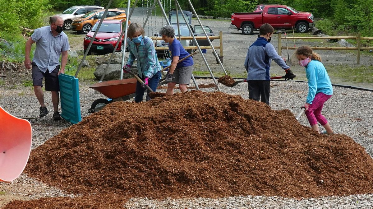 Volunteers trimmed branches along paths and removed fallen limbs Picnic tables were trucked from storage and set out ready to be surface cleaned and painted. Many hands collected trash and pulled weeds. A large pile of mulch was distributed by the wheelbarrow load and bucketful over the course of a few hours. Restrooms were swept and the sinks scrubbed shiny white.