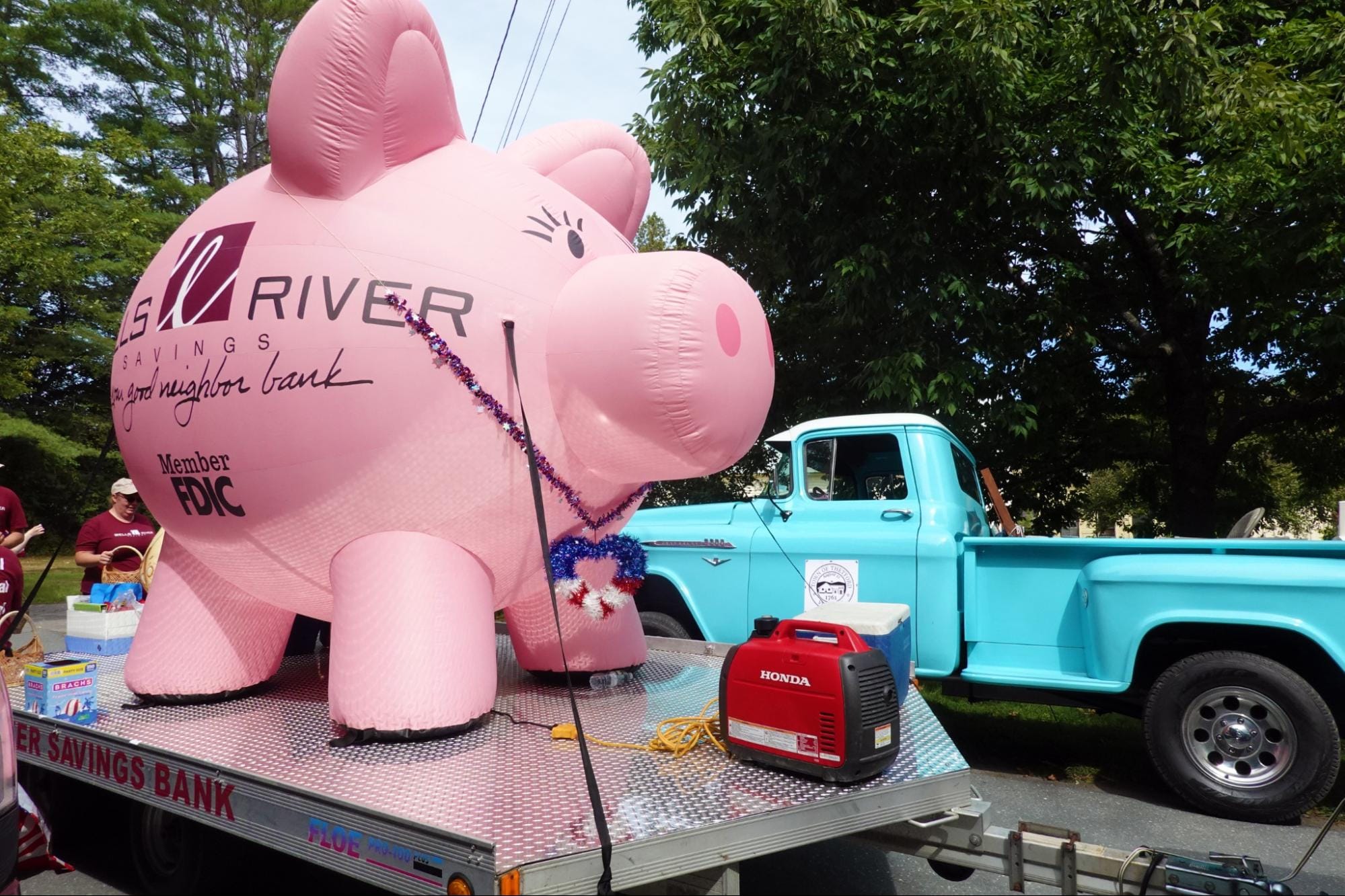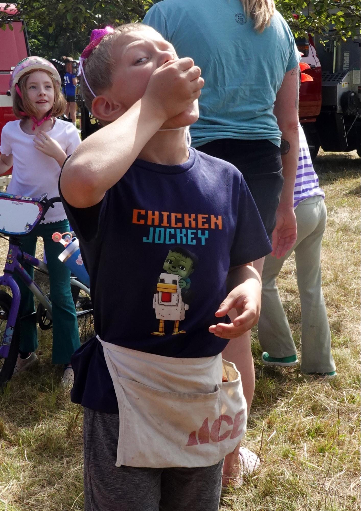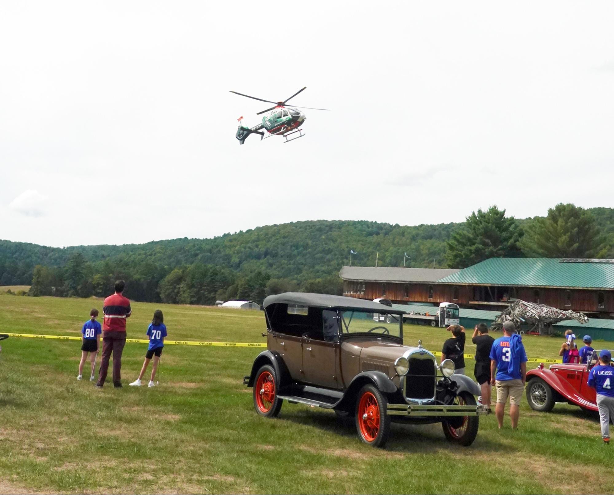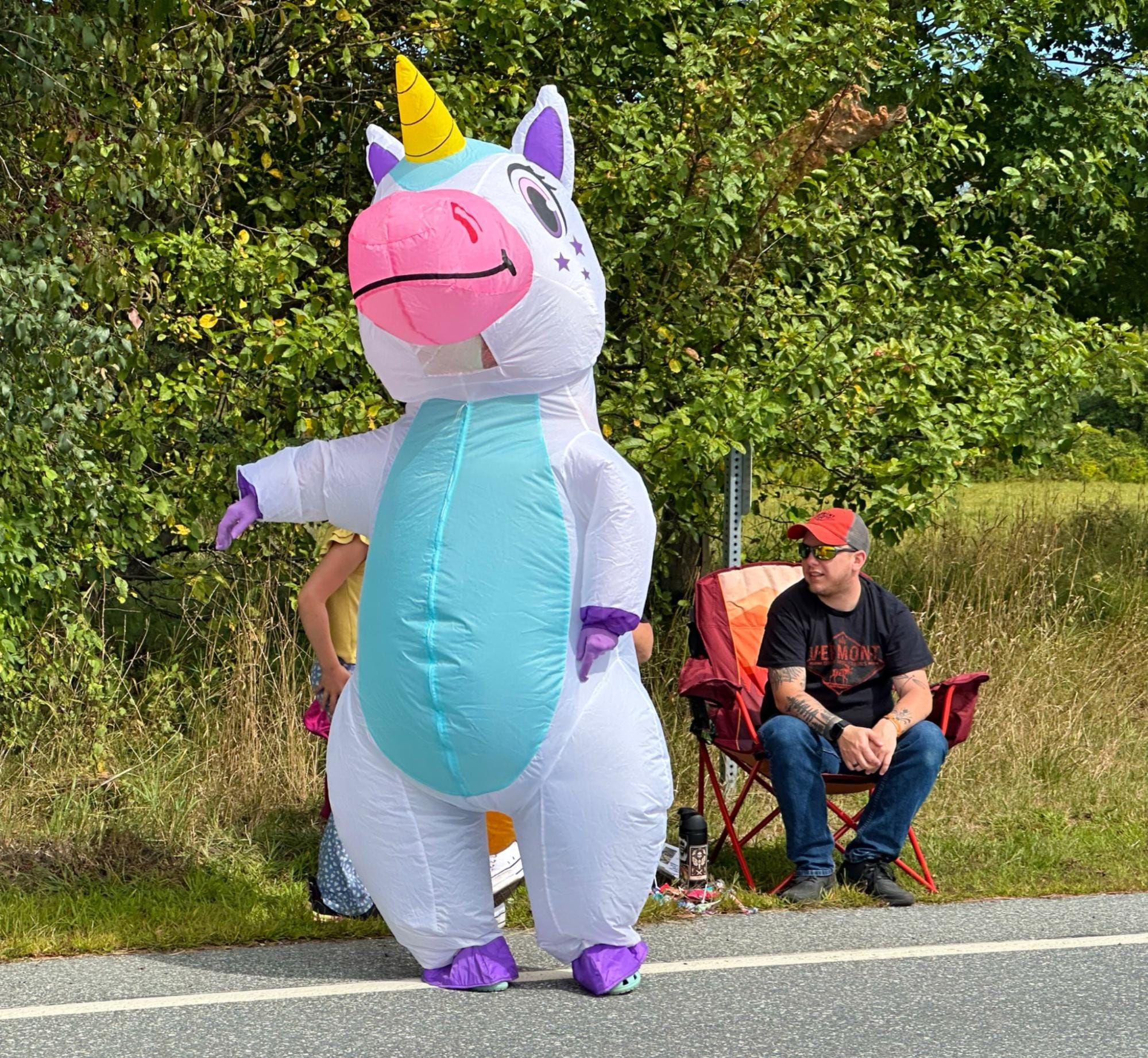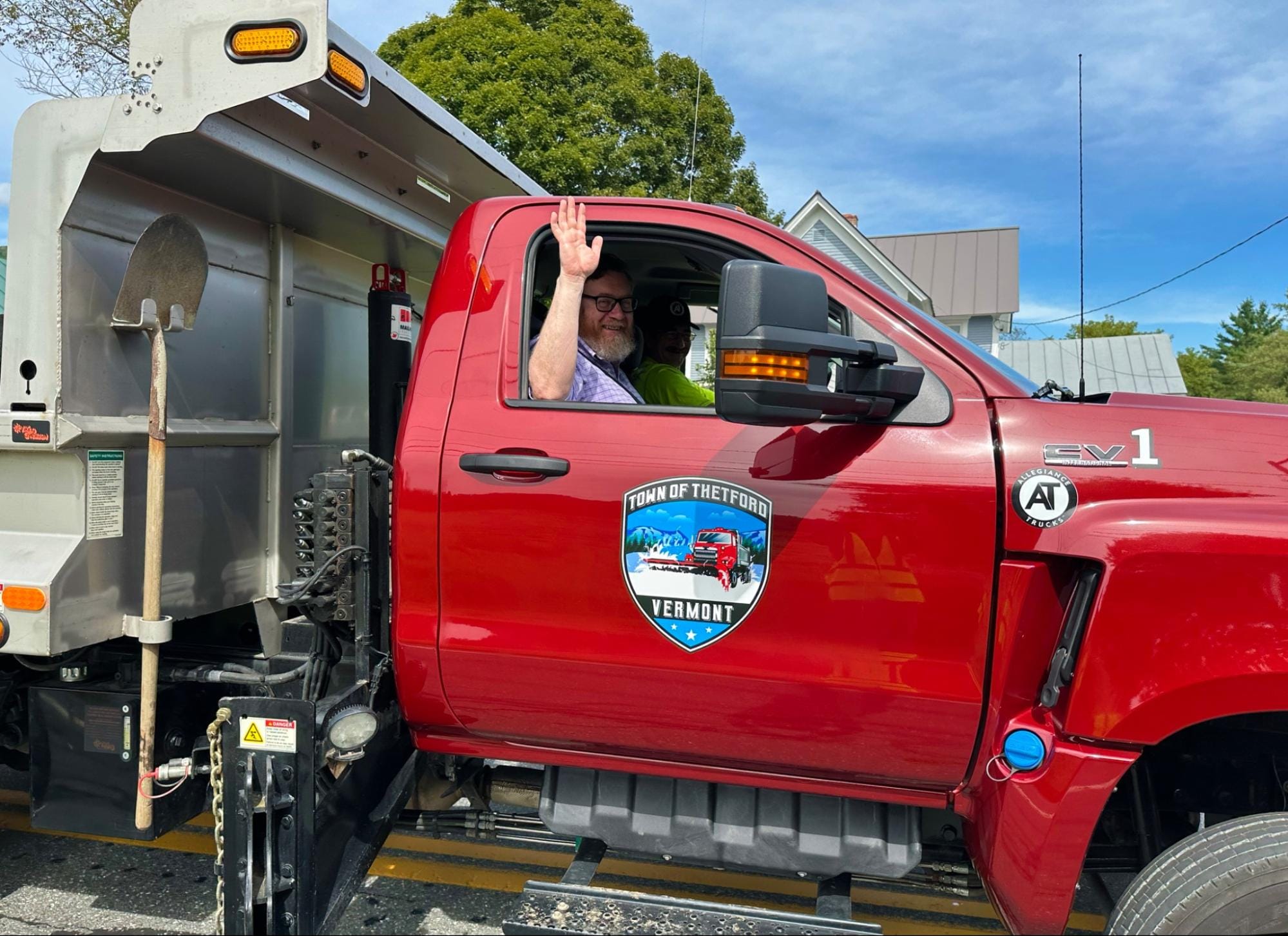 The dynamic leadership and infectious enthusiasm of Charlie Buttrey (left) revitalized the 2025 parade, while Amy Stone Vance (right) ensured its continuity over the past few years.The Grand Marshall is the ceremonial leader of the parade.Speaking of hats….no sunburn here!Every hat tells a story: the iconic red hat of the Shriners is a symbol of brotherhood, philanthropy, and their commitment to helping children at Shriners Children' s Hospital.And some types of headgear mean safety first!Sergeant Karie Tucker monitors the start of the parade in Kinne’s field.Thetford 4-H Club fixes the harness for their pony’s cart — and their hair.No chickens were noticed in the parade, but just in case, there was a chicken jockey.A pumped-up pig … but no talk of inflation at the bank.A fanciful dragon …And a unicorn to round out the mythological menagerieBelgian draft horses and hay wagon, courtesy of Streeter Forest Farm.There were vehicles old and new, large and small. Here the Pompanoosuc Mills truck navigates the Rt 113-Rt 244 junction. The army loves a parade.So does the Game Warden.No parade is complete without a fire truck. Here is Thetford’s. In addition, Orford and West Fairlee generously sent fire trucks to the parade.Town Clerk Tracy Borst and family.A mix of selectboard and planning commission members threw candy along with the Recreation Coordinator. Town Manager Brian Story in Thetford’s newest truck, driven by Road Foreman Dale Lewis.ATVs made a strong showing.And there was an impressive line of tractors.Red Kite — small and bright ... and the donor of much parade candy!Smaller still …But if there were a prize for the smallest it would go to Sabil and Sons Towing and Recovery!It’s not a parade without a float and banners. Here’s the comfy float of the Thetford Elder network.The Parish Players celebrate their 60th year. Martie Betts holds the banner.Thetford Academy celebrates its star athletes.Caring Communities preschool bannerThe well-supported Apartheid Free Community banner — count the legs!Thetford Recycling approaching the Rt 244 bridge that was beautifully decked out with balloons.To top off the occasion, Charlie had asked if the DHART helicopter could make an appearance. Here they come!DHART meets Vermontosaurus.Curious kids were welcomed aboard the DHART.Community appreciation!