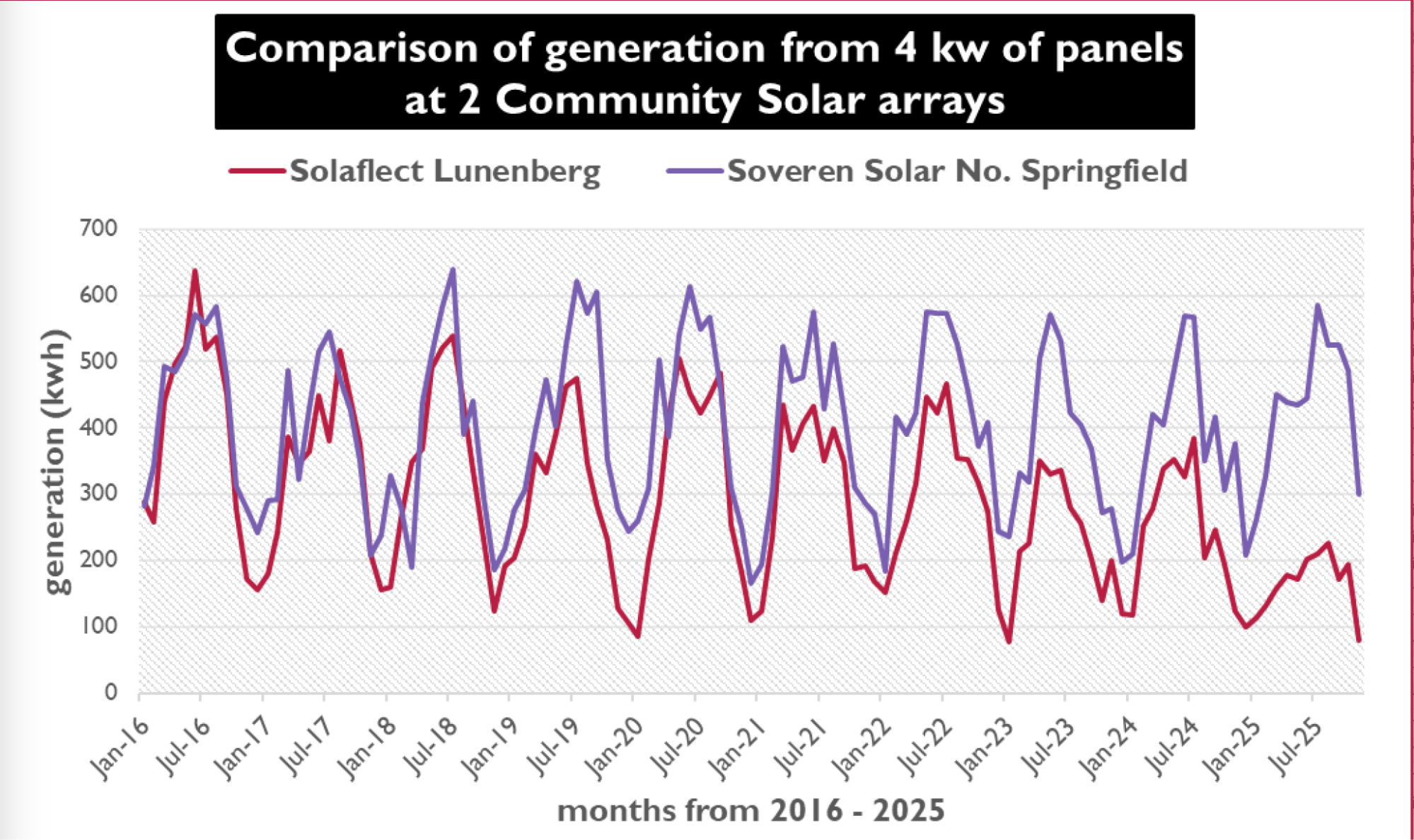 In the meantime Kate and Bill had added electric heat pumps to their home and purchased an electric vehicle. They tried to sign up for another community solar under construction close to home in Thetford. But they were informed that under VT rules they could only be a member of one community solar project. Being curious as to whether other customers of their Lunenburg tracker park were experiencing the same problems they inquired with Solaflect but were told by an administrator that the company cannot divulge customer information.