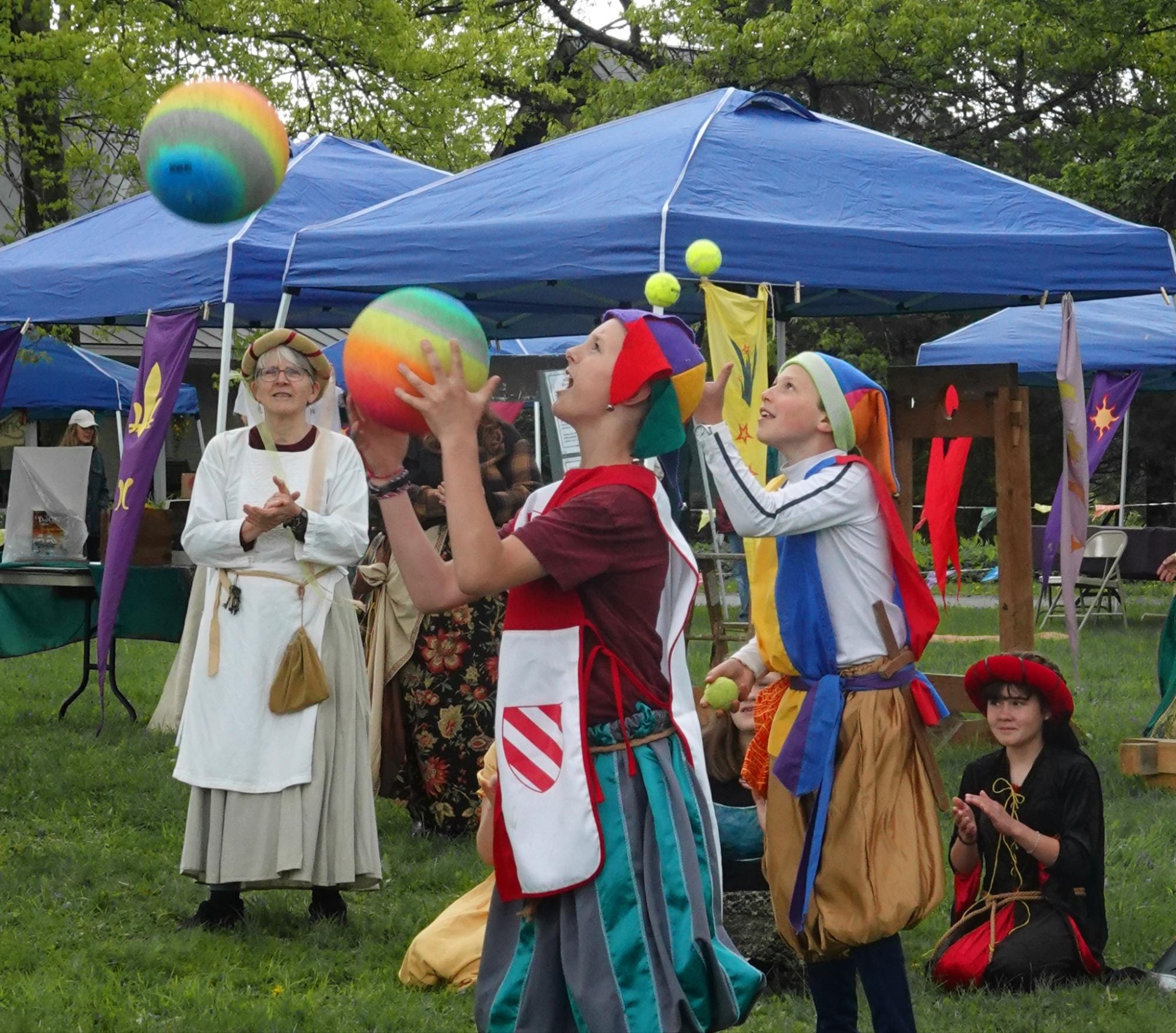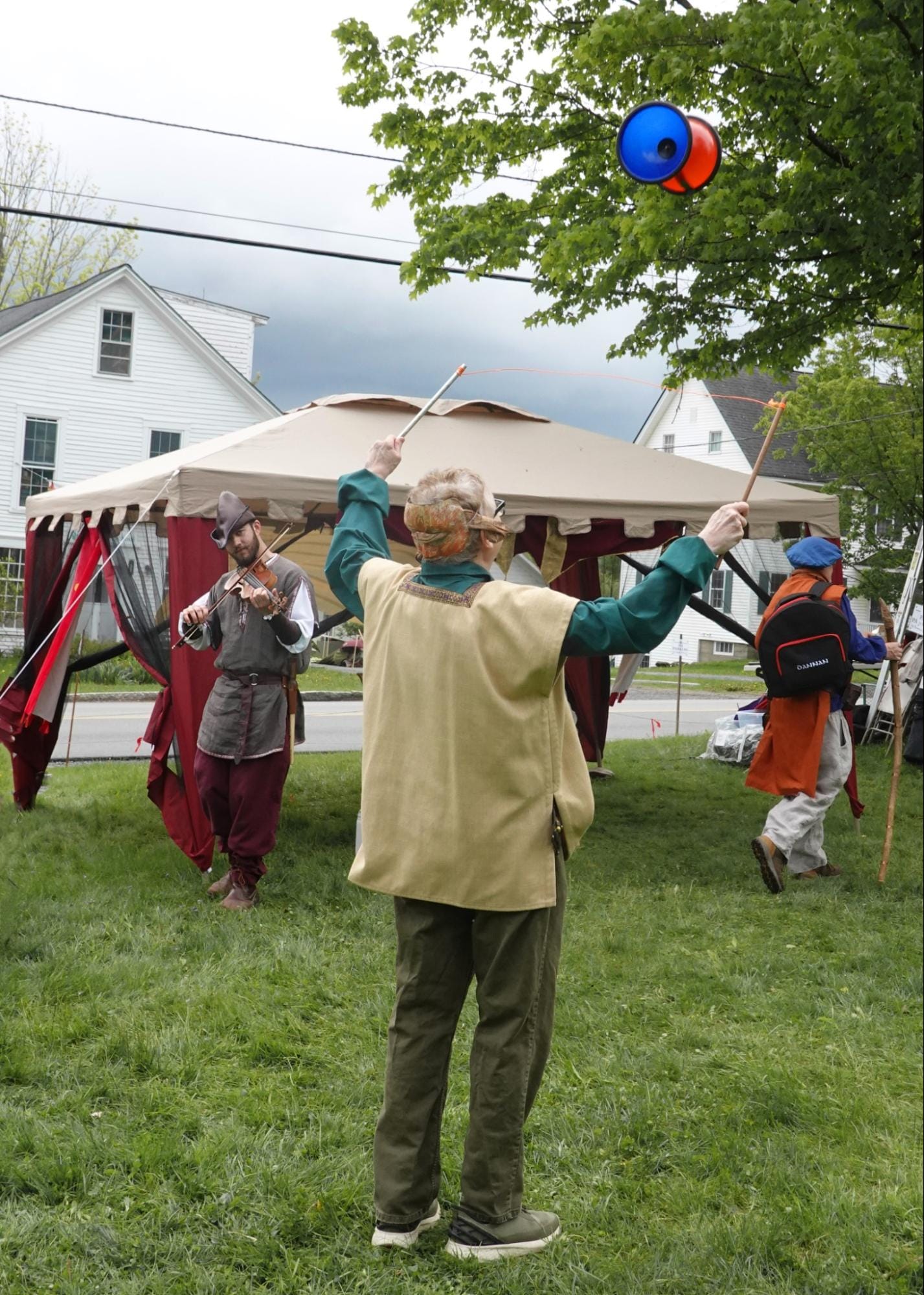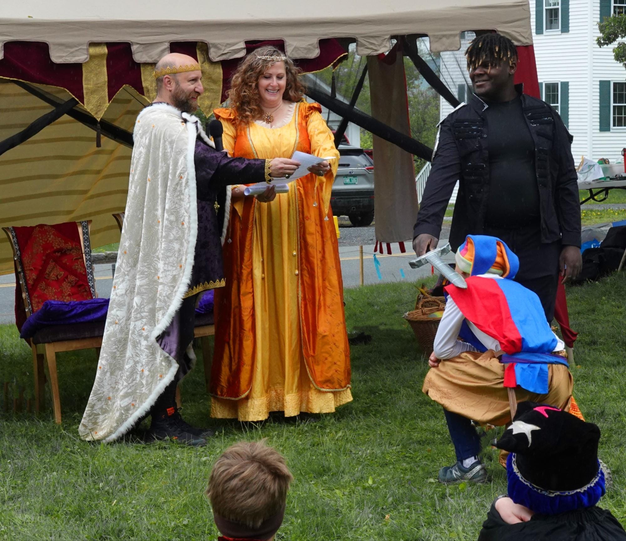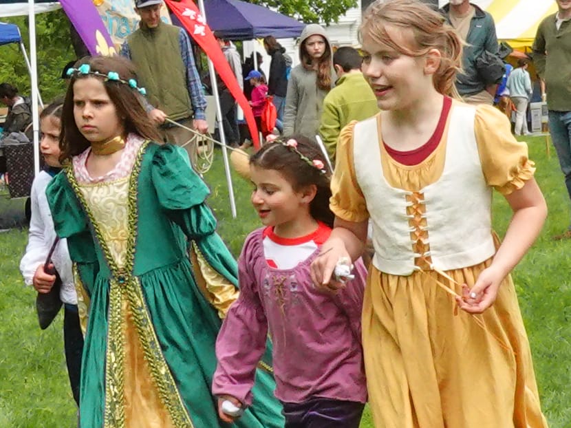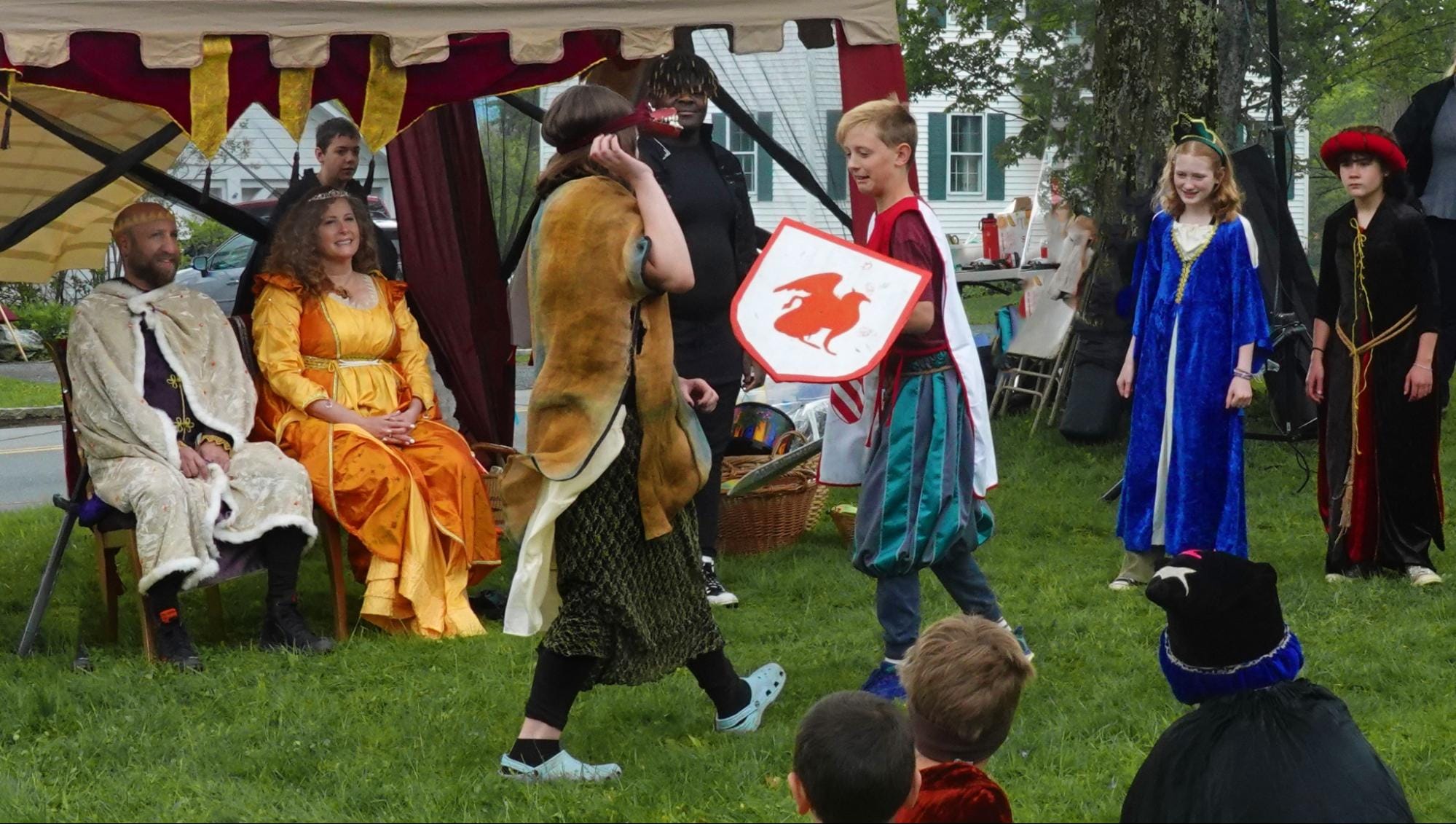 Medieval-themed revelers braved Saturday's threatening skies and occasional drizzle to turn out for the Open Fields School Medieval Festival on the Thetford Hill Green. This colorful, fun-filled and family-oriented event has a history, as briefly sketched out by School Director Nellie Pennington.