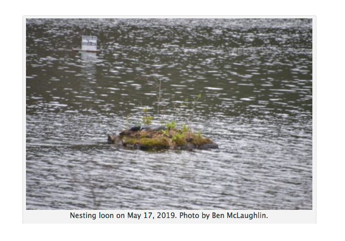 Loons were on the endangered list in Vermont till 2005. Currently there are about 100 breeding loon pairs in the state. They typically nest on the ground at the edge of a lake. However, their nests are vulnerable to flooding and to artificial raising of the water level. On Lake Fairlee, the Vermont Center for Ecostudies, residents, and VCE volunteers established a loon nesting platform in 2017 near wetlands at the north end of the lake. It is watched over by residents and the VT Loon Conservation Project. The platform has successfully produced loon chicks for the past few years. Strong waves from passing wakeboats pose a serious threat, directly to the nesting platform and also because of general disturbance of what had been a quiet and secure-seeming area.